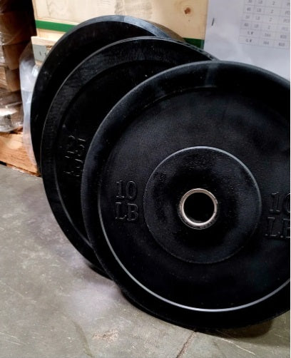 Pro Bumper Training Plates with Center Steel Hub (25,35,45 lb) per Pair - Virgin Rubber