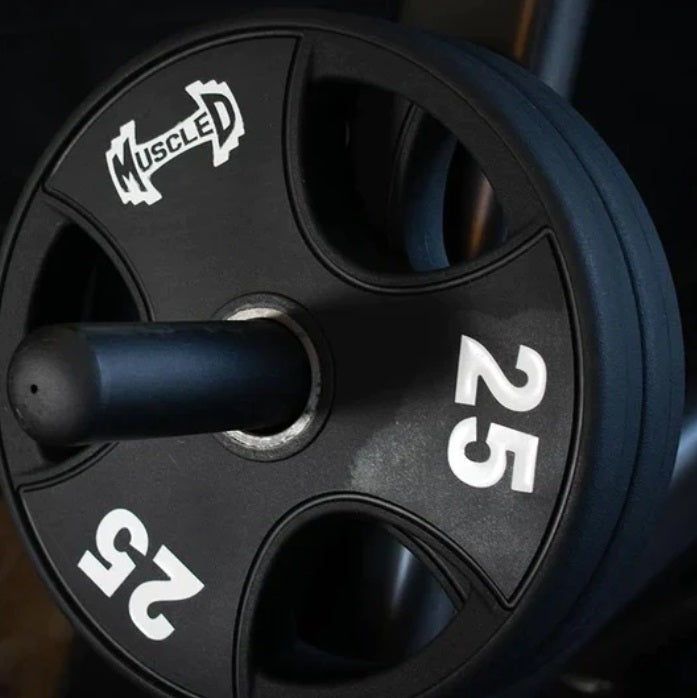 Unmatched Quality Crafted with precision and an unwavering commitment to excellence, the Pro Urethane Coated Olympic Plates are not just weights; they're a testament to Muscle D Fitness's dedication to pushing the boundaries of innovation. The urethane coating, a symbol of quality and durability, ensures that these plates stand up to the toughest workouts, becoming your trusted companion in the pursuit of strength.